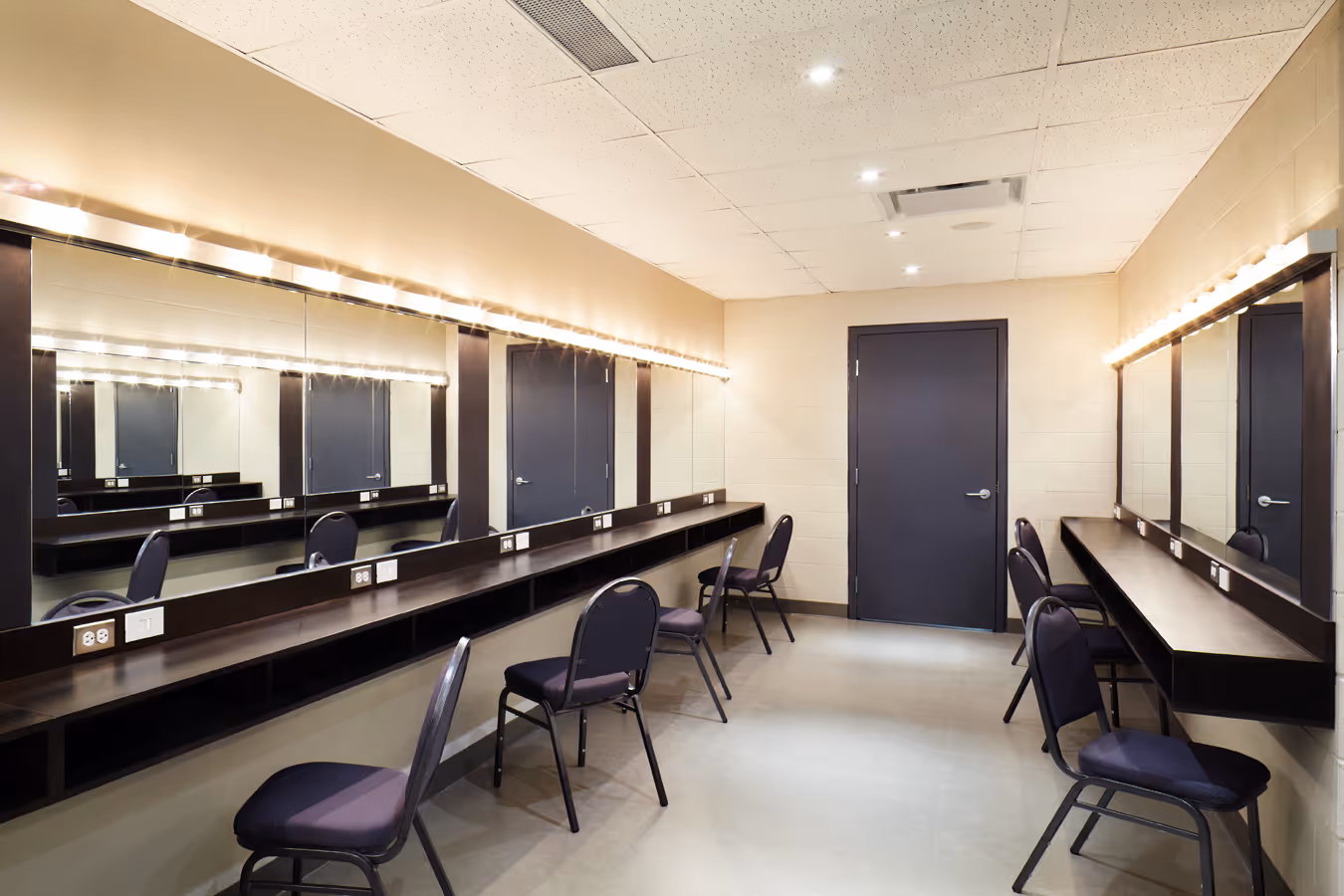 Behind the scenes, the theatre includes a generous green room/lounge, performers’ dressing rooms with lockers and showers, shared office and storage space for resident companies, and support zones designed for casts of more than twenty-five. A full catwalk grid and technical gallery provide extensive options for lighting, sound, and projection, enabling local groups to stage technically sophisticated productions and making the venue attractive to touring artists.