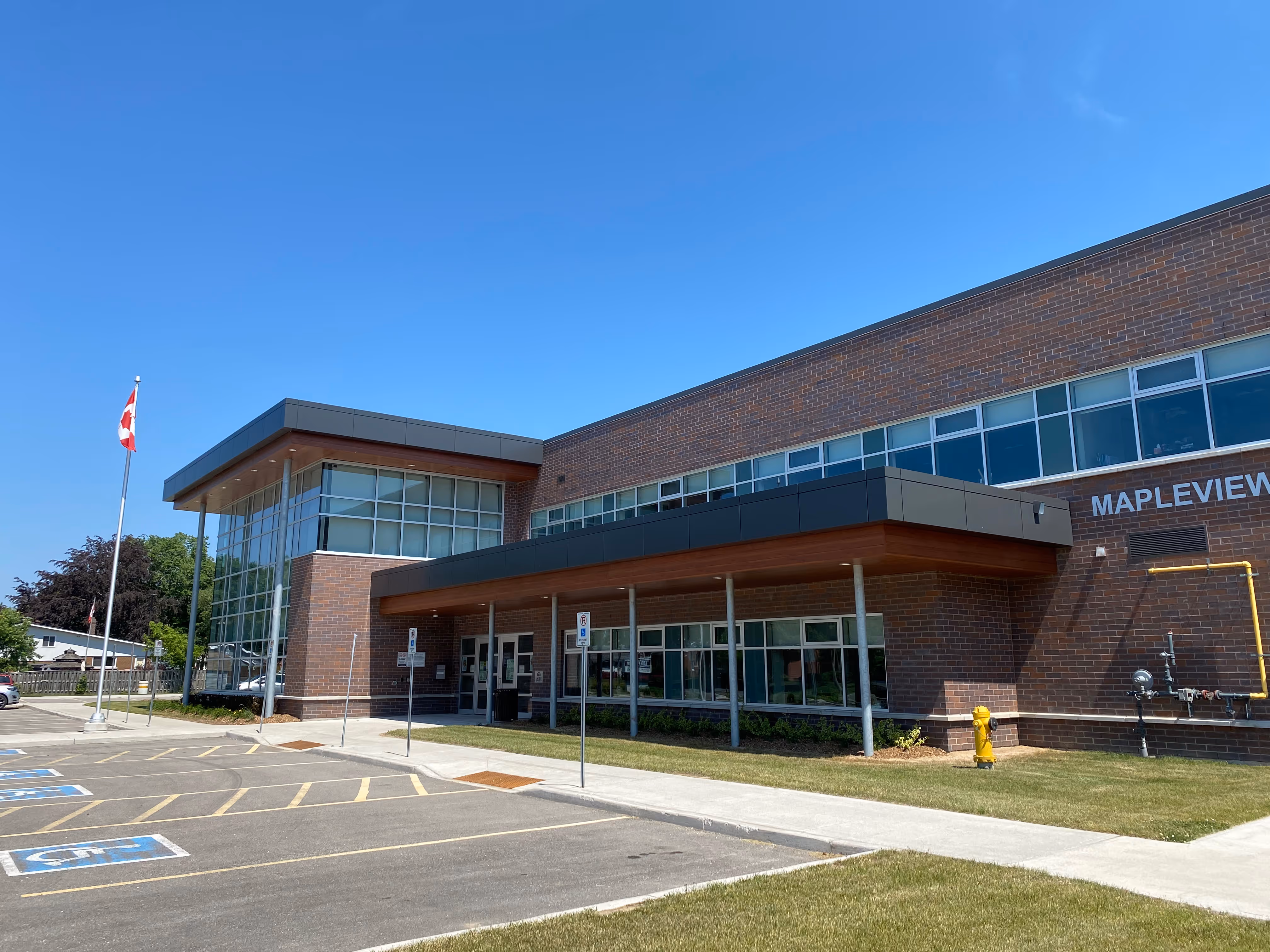 Morning light fills Mapleview Elementary with calm, bright spaces that encourage curiosity and belonging. Designed by Salter Pilon Architecture, the new JK–8 school unifies Dunnville’s Fairview Avenue and Grandview Central communities on a single campus focused on wellness and inclusivity. Guided by the Board’s Green School policy, the building incorporates abundant daylight, energy-efficient systems, reflective roofing, and low-VOC materials to support a healthy learning environment.