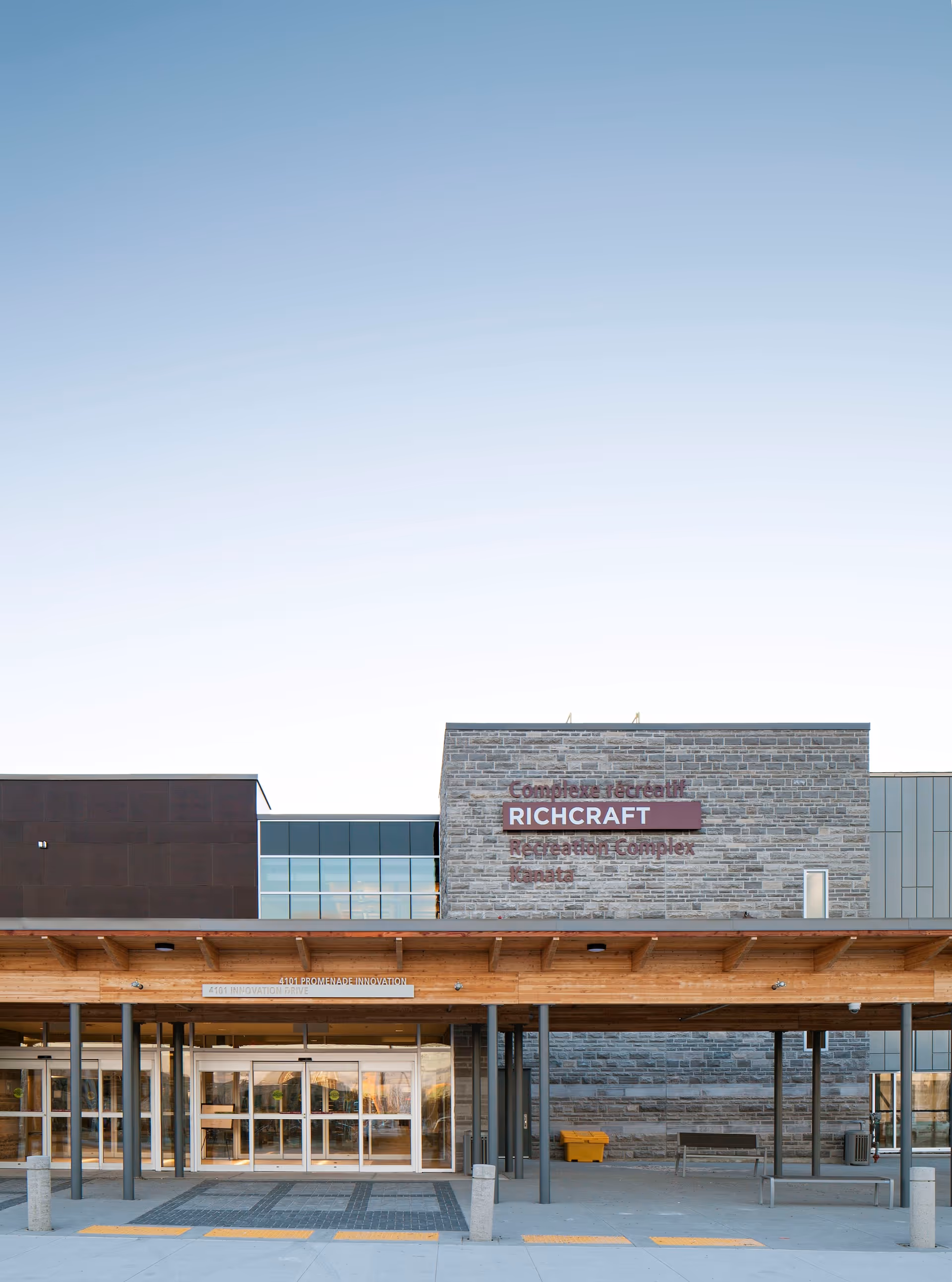 Architects, community stakeholders and government came together to realize a sustainable vision for the Richcraft Recreation Complex. Public consultation drove many of the priorities of this project which has been hugely successful and a recipient of a Wood Design Award for Green Design from Wood WORKS! Ontario making it an excellent example of beautiful, sustainable, municipal infrastructure. It features a fitness facility, community spaces, a double gymnasium, an 8-lane 25 metre pool and leisure pool/whirl pool, and targeted a LEED Gold certification from the outset.