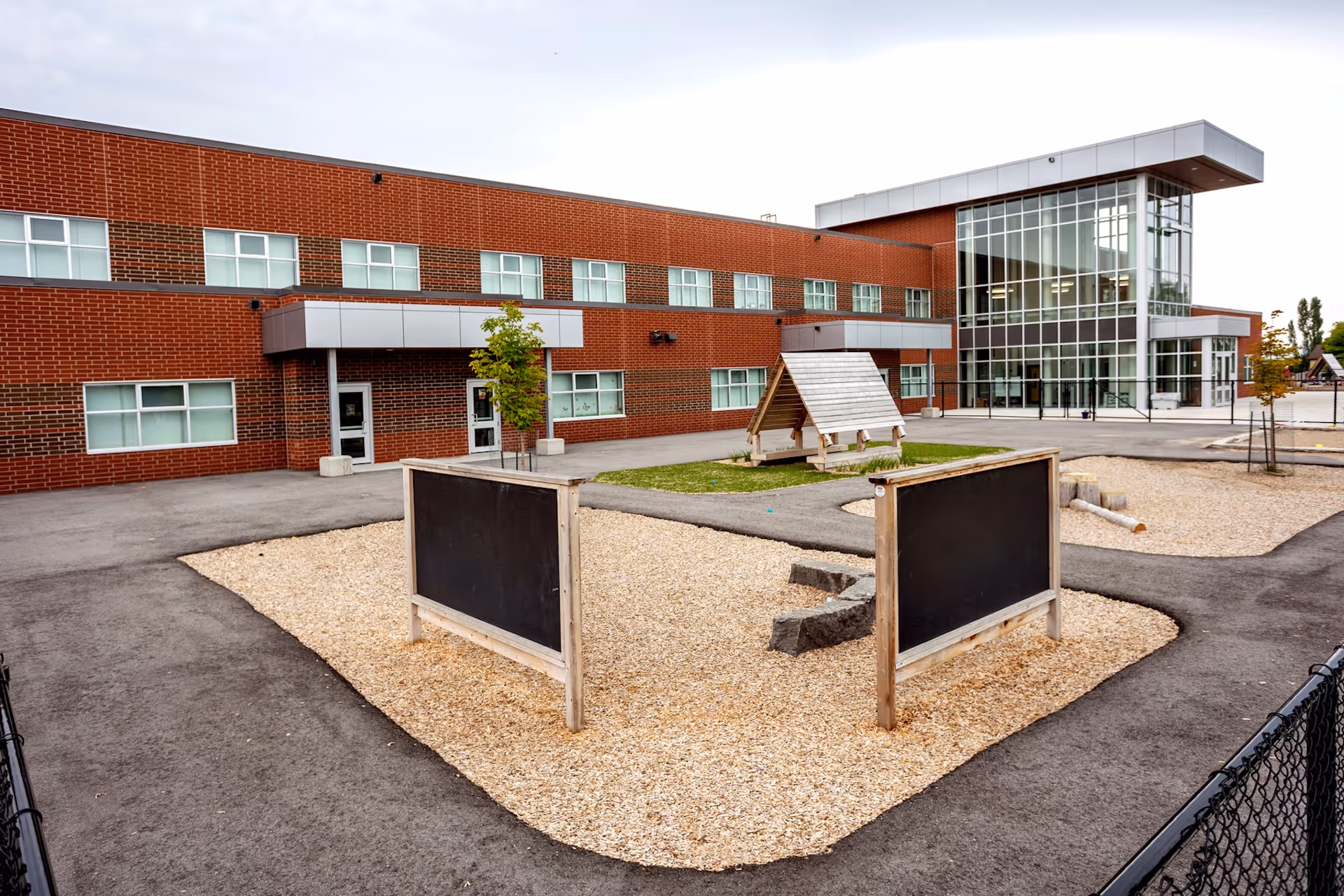 With the focus of a growing community, the School Board had an urgency to focus on extending their offering to the community with new facility features that would accommodate this growth. The 470 pupil school includes 4 kindergartens, 15 classrooms, one special education room, a resource room, high ceiling gymnasium, library and a chapel. What is most unique is the 4,500 sq. ft. childcare facility with three rooms for Toddlers, Preschoolers and infants program and includes a family centre.
