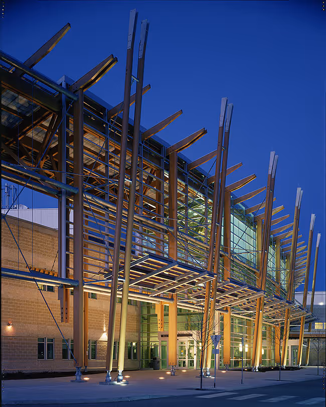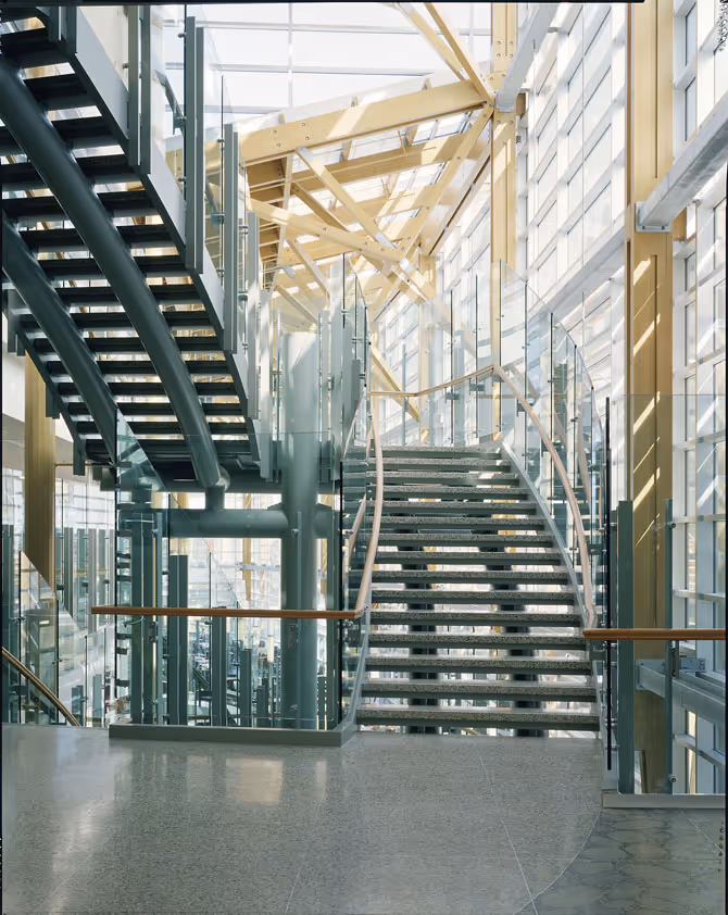 It was the first hospital in Canada to use mass timber extensively through the structure of the main public areas of the entire building, which hadn’t typically been permitted by the Ontario Building Code back in 2000. During design commencement we were challenged by the owner to ensure the new facility would honour and reflect the North. A natural selection for its earthly connection and healing properties, wood was selected as the material of choice for the structure of the main public areas of the hospital and the cancer centre. We were successful in negotiating with the Building Department and the Ontario Fire Marshall to implement this groundbreaking initiative.