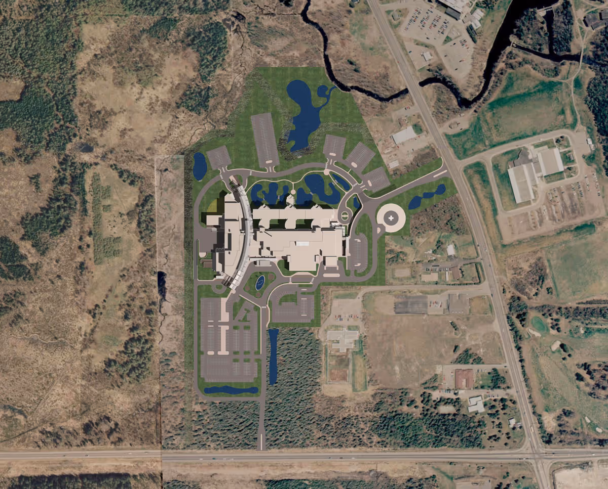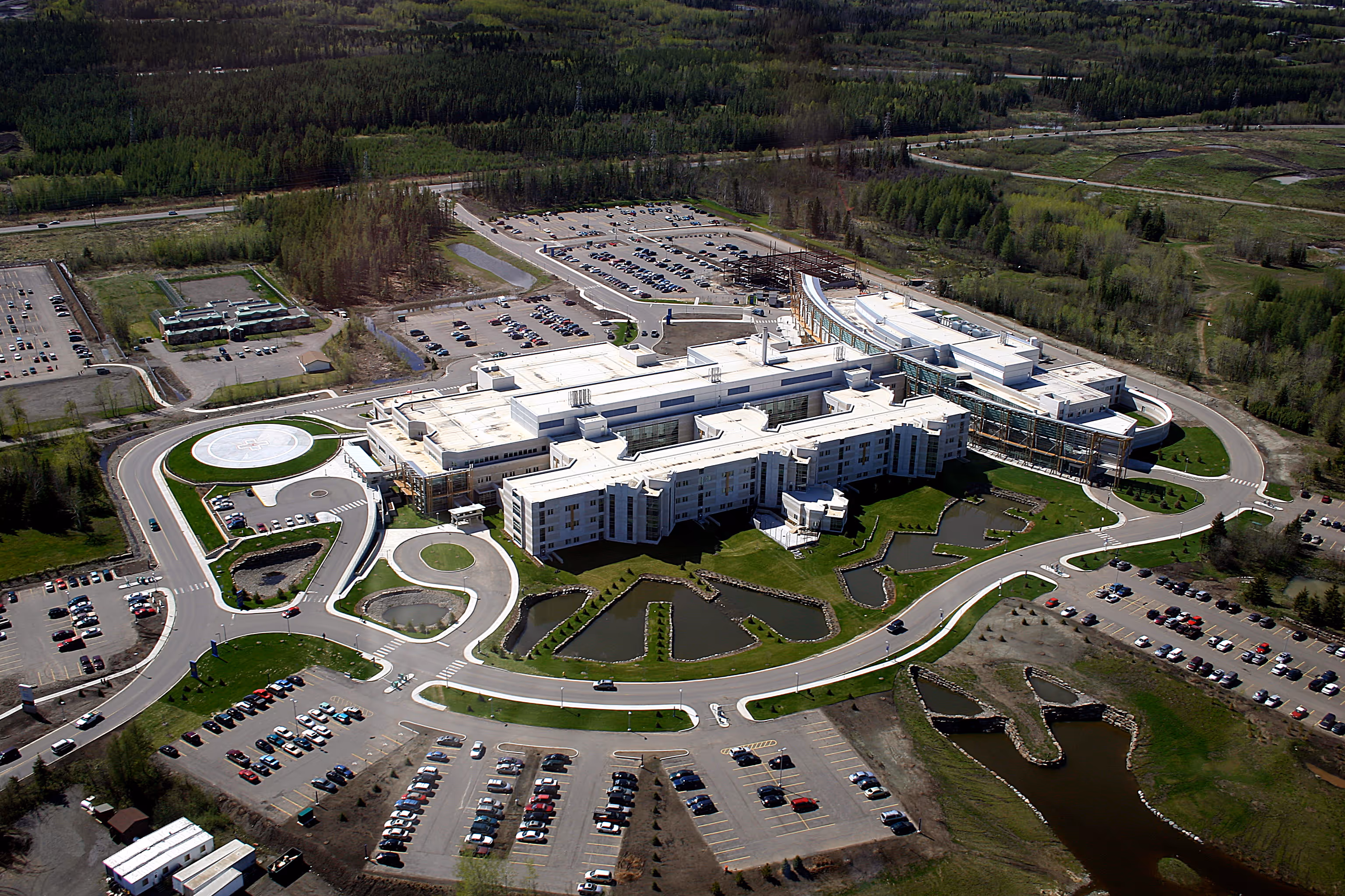 The TBRHSC is a 375-bed Regional Hospital that includes the Northwestern Ontario Regional Cancer Centre (NWORCC) and contains several industry firsts in both design and construction management delivery method (CCDC5B) of hospitals in Canada. Following extensive research, a variety of environmental design aspects were incorporated into the design including passive solar design elements incorporated into mechanical systems, natural ventilation, solar chimneys, photovoltaics, green products that limit off-gassing, progressive site strategies, and stormwater management solutions. At the time large institutional buildings had an acute absence of these passive elements that have since been timelessly proven to reduce operating costs, benefiting their tight operational budgets.